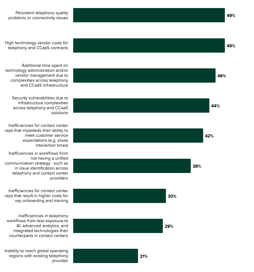 Additional time spent on technology administration and/or vendor management due to complexities across telephony and CCaaS infrastructure