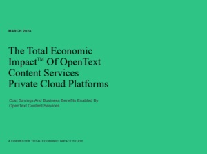 A FORRESTER TOTAL ECONOMIC IMPACT STUDY Explore More FOLLOW FORRESTER Download PDF Study: The Total Economic Impact Of OpenText Content Services Private Cloud Platforms Read Now Contact OpenText
